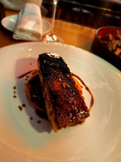9/10Nice modern setting & great vines by the glass. Where the fassano tatar could excell, the dry aged tenderloin could not quite live up to its hype. Maybe since we both got a cut from the larger head of the tenderloin, rather than clean medallions from the centerpiece had an influence on the roasting process? The red cabbage with mustard dressing on the other hand was spot on and perfect with the red meat.