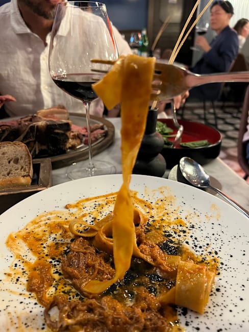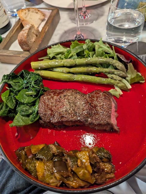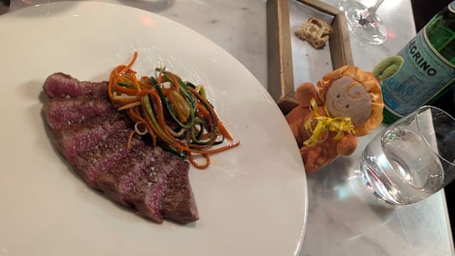 9.5/10Mouth-watering steak grilled to perfection, well portioned and beautifully seasoned sides, a balanced and well-paired bottle of Montepulciano (from an extensive wine list) and friendly, attentive staff. What more could you want? A great first night in Milan!