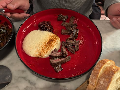 9/10Nice modern setting & great vines by the glass. Where the fassano tatar could excell, the dry aged tenderloin could not quite live up to its hype. Maybe since we both got a cut from the larger head of the tenderloin, rather than clean medallions from the centerpiece had an influence on the roasting process? The red cabbage with mustard dressing on the other hand was spot on and perfect with the red meat.