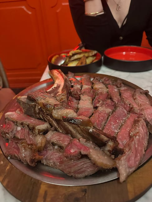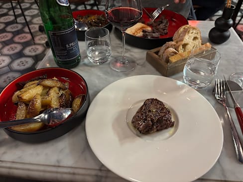 9.5/10Mouth-watering steak grilled to perfection, well portioned and beautifully seasoned sides, a balanced and well-paired bottle of Montepulciano (from an extensive wine list) and friendly, attentive staff. What more could you want? A great first night in Milan!