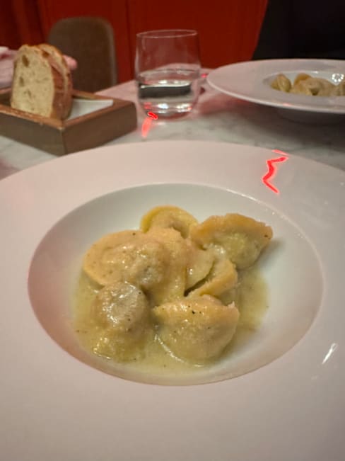 9/10Our favorite food was tortelli and mushrooms. We liked the meat and apple cake.
