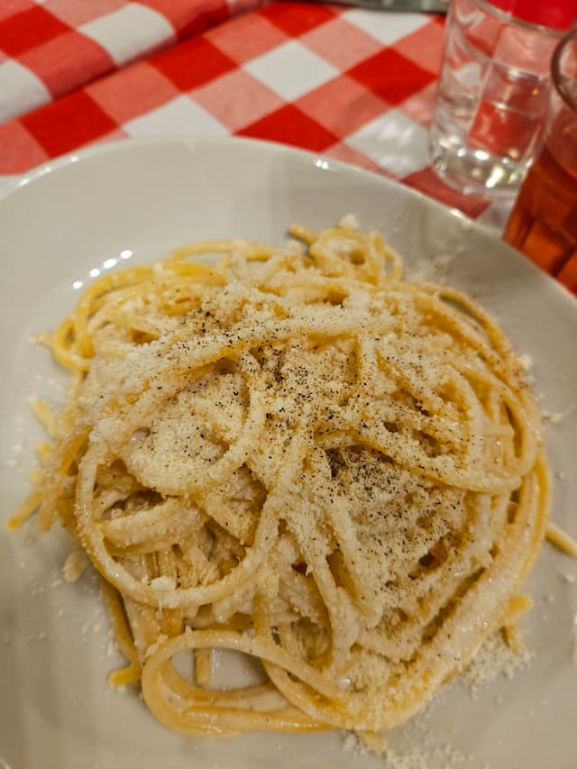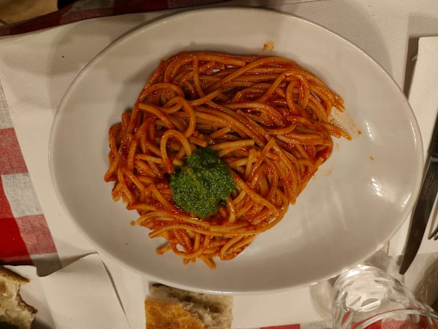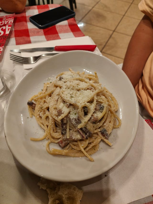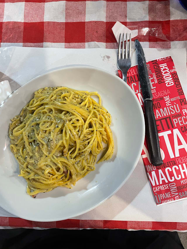 8.5/10This small restaurant specializes in spaghetti with many different preparations. Our party of 5 shared 3 salads and bruschetta to start - all were very good. We ordered 2 spaghetti carbonara, 2 amatriccana and 1 cacio e pepe - all were delicious. The staff was friendly and helpful. This is a local gem. Please support it!