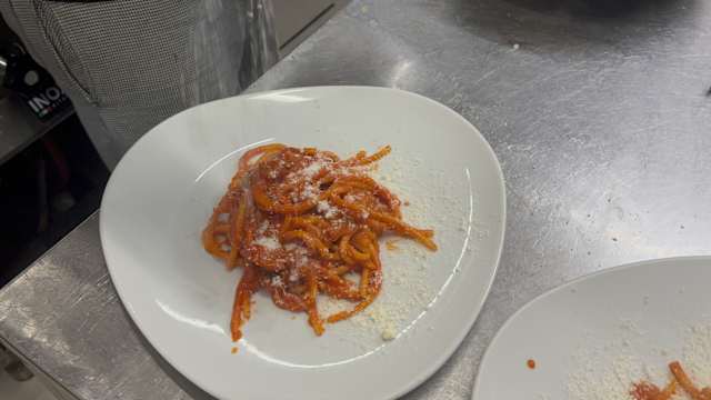 - Sugo dell’amatricina, guanciale e pecorino