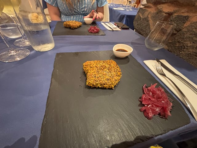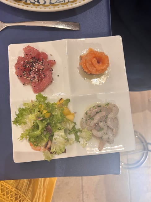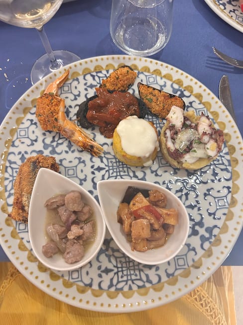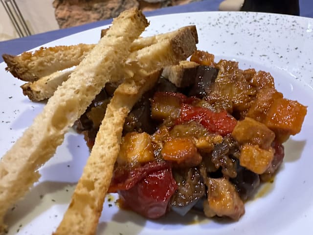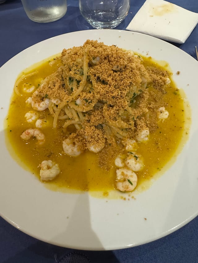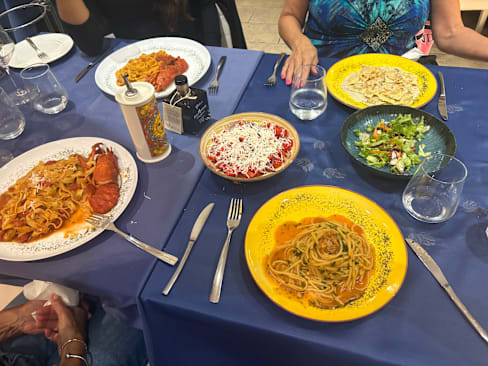8/10Food was delicious but a bit too salty. This was our first night in Sicily and the portions were larger than expected, difficult if not impossible to complete the starter + primo + second + dessert without bursting!