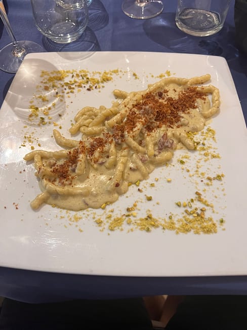 6/10We came from Toronto, Canada to Sicily for our anniversary. We spent our anniversary night at Due Pistacchi and were surprised it wasn’t as expected- we don’t know what happened. The gnocchi was soo dry and rubbery, unlike the amazing food we have had here while visiting. I want to point out that the staff took good care of us and offered to remove the item from the bill. The antipasti and the wine were very good. Overall, both my partner and I are disappointed we chose this restaurant for such a special occasion.