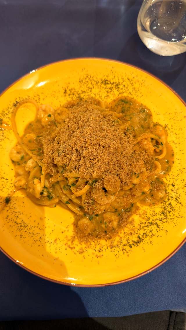 - Spaghetti al verdello con gambero bianco e mollica "atturrata"