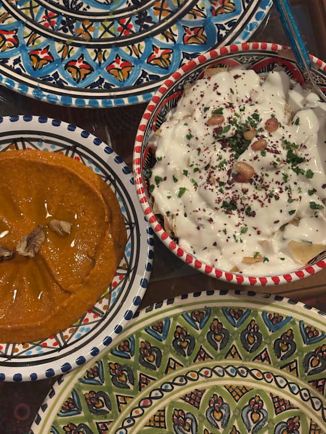 - polpa di melanzane al forno, peperoni, chicchi e salsa di melograno