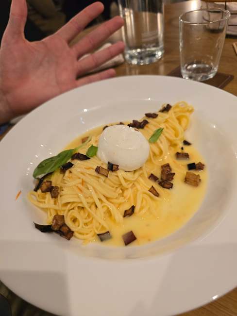 7/10We appreciated the friendly and helpful staff. As for the food, my guancia di vitello was soaked in fat covering the mashed carrot underneath the meat, but the pasta dishes were scrumptious. Had it not been too oily I would have enjoyed the dish better. But the fact that their servings are abundant, we ate and enjoyed every bite of each dish and ended up well satisfied.