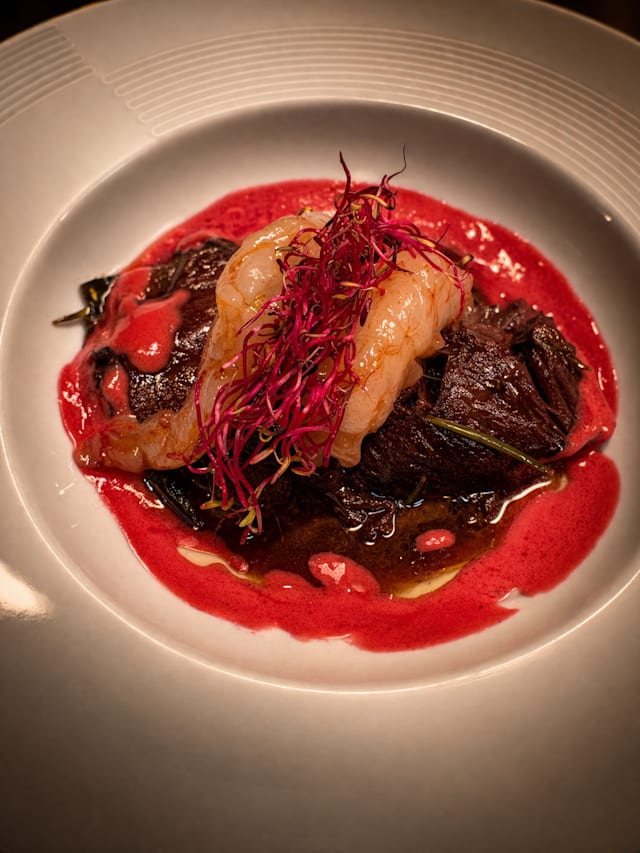+1The food was excellent we picked the veal and spaghetti with shrimp as first course and wild boar cheek and pork with mustard from Dijon. Everything was perfectly seasonned and well cooked. I am not giving 5 stars because the toilet could need a little cleaning but otherwisd the staff was really nice and they also speak english.