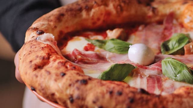 Pomodoro san marzano DOP, prosciutto cotto artigianale, salame dolce, funghi porcini, olive nere di gaeta, mozzarella misto bufala, olio extravergine di oliva oro di caiazzo.