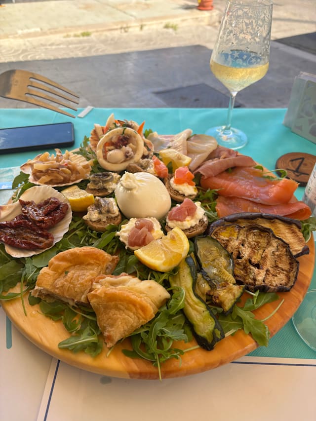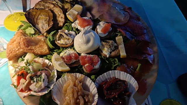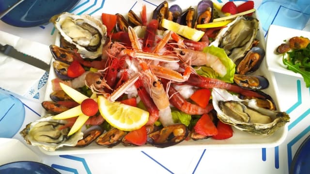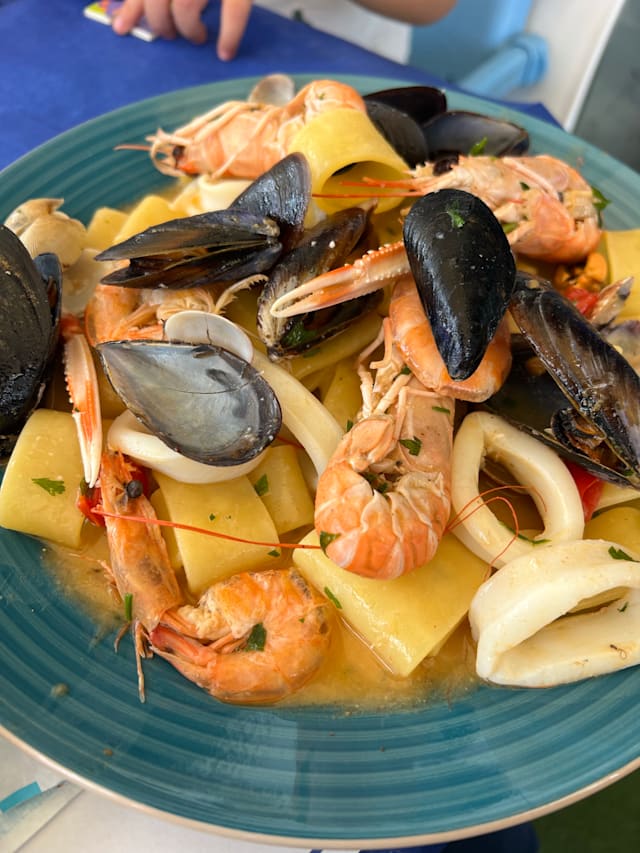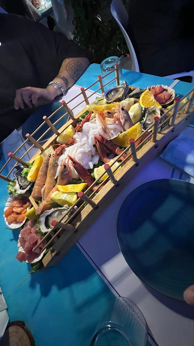 Ostriche, gambero rosso e viola, scampi, tagliatelle baresi e pescato del giorno