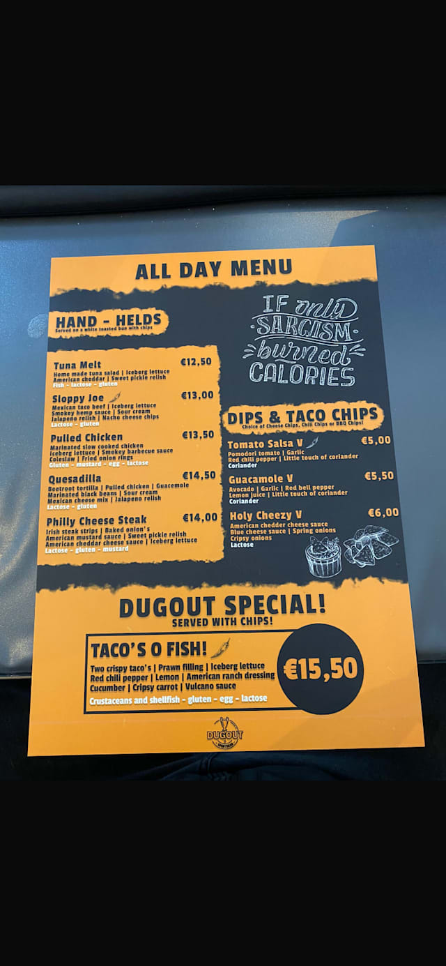 If you plan to eat at Dug Out Sportsbar, the average price should be around €25. The average price is calculated based on appetizer/entrée or entrée/dessert, excluding drinks. Prices have been provided by the restaurant.