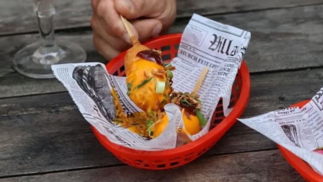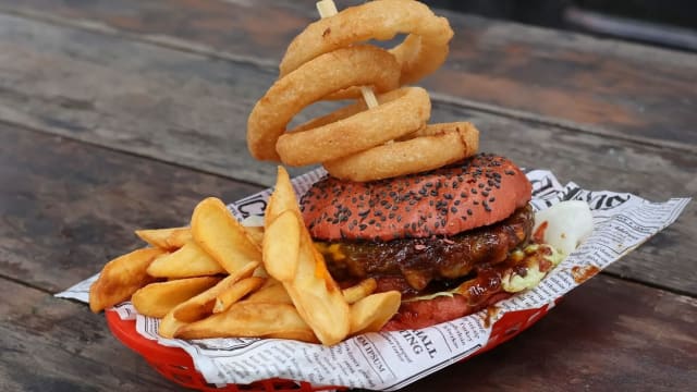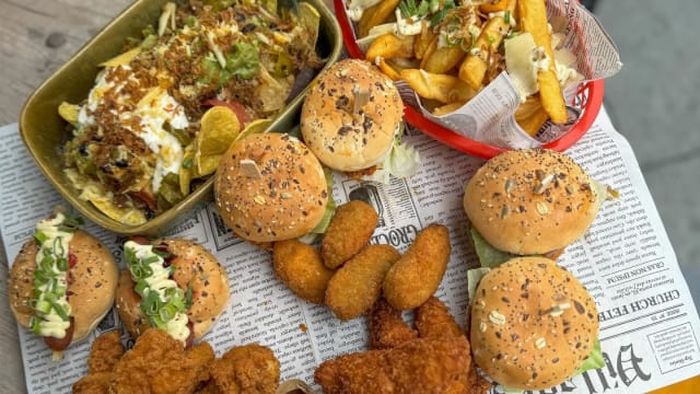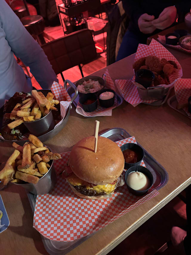 2 Mini Sloppy Joe's | Sweet Chili Ribs | Truffle Croquettes | Onion Rings | Mixed Olives | Old Cheese | Chorizo | Bitterballen | Tempura Shrimp | Chili Sauce | Truffle Mayo | Mustard | Garlic Mayo | Spicy cocktail Mayo