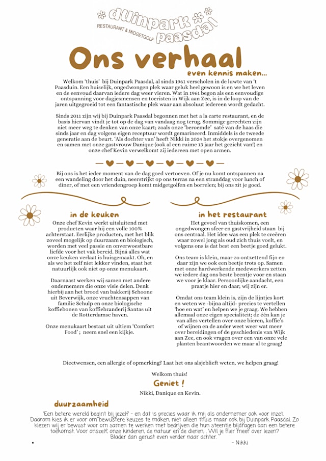 Duinpark Paasdal is rated 9.9/10.TheFork users have rated accordingly in the following categories: