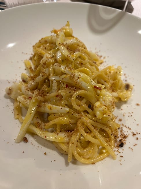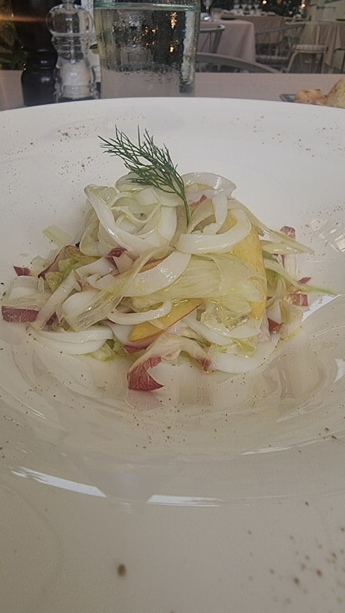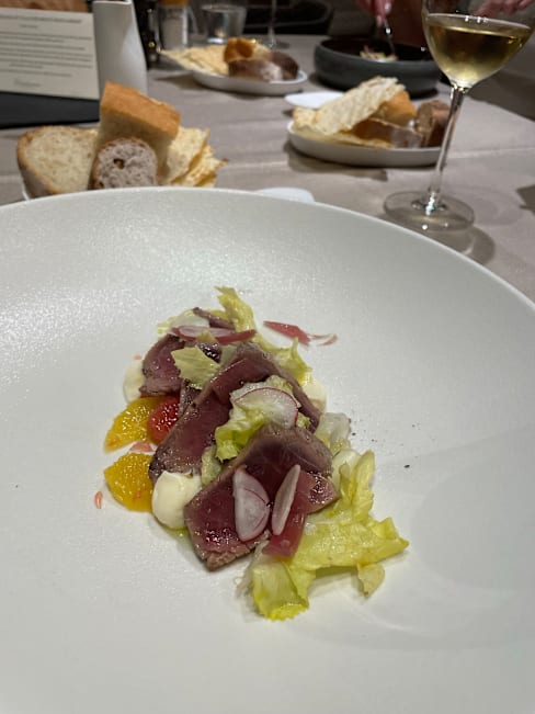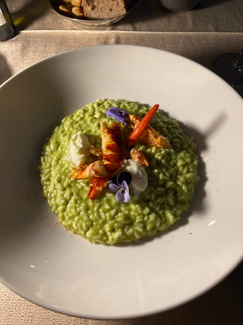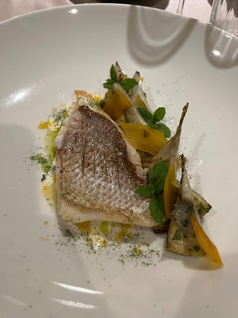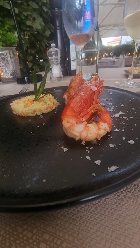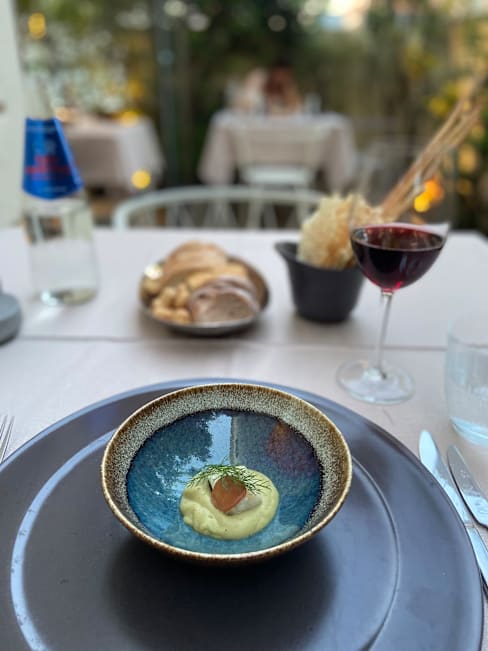 5/10Beautiful setting, although wear insect repellent if you're planning on sitting outside due to the plants. Great wines, I went for the pairing and enjoyed each of them. Unfortunately the food was very disappointing, I went for the tasting menu and three out the five dishes weren't great. Calamari and peach was seriously lacking in seasoning and could have done with more texture. Salted cod was OK, but just felt far too heavy a dish for this time of year and the current weather. Red mullet tagatelli was delicious and by far my favourite dish, it was a very well balanced sauce made from the bones. The texture of both the pasta and red mullet was spot on. Gambarini rosso with cous cous, very unbalanced dish texture wise. In my opinion there was way too much cous cous and without a sauce or generous enough dressing, the dish was very dry. Gambarini rosso were nice, fresh and flavourful, but with only three and too large a portion of cous cous, they didn't feel like the star of the dish. A almond and chocolate parfait magnum style dessert with berries was fine. Nothing wrong with it, but also nothing to get excited about. Service was OK throughout the meal. Three different waiters served me, one was very knowledgeable and friendly, the second very friendly and the third didn't appear to be trained so well, an example of this being when they cleared my wine glass that was still half full, for the next pairing. Overall I'd say skip the tasting menu and full alc, maybe instead choose some antipasti plates and some wine instead.