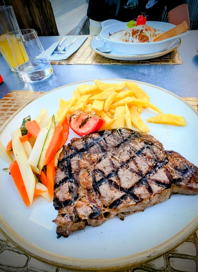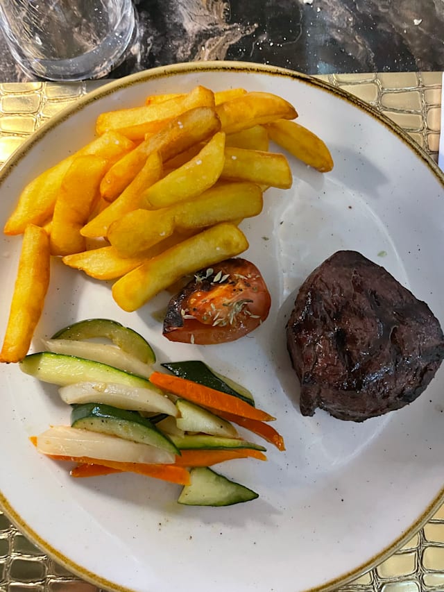 10/10amazing steak perfectly cooked and presented. Great service, and although the wine we ordered was not available, the lovely young waiter recommended a fabulous bottle of red that we really enjoyed