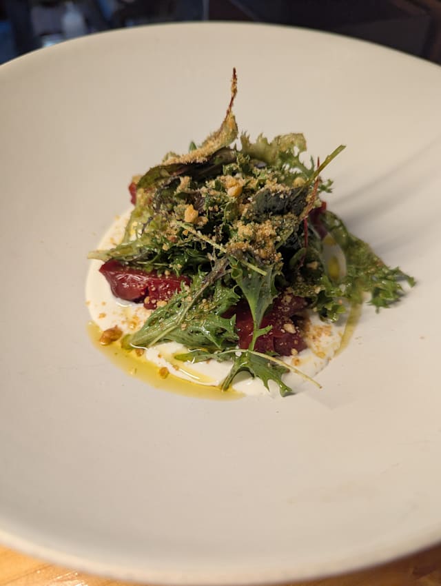 8.5/10+2Both food and service carried a quiet excellence — flavors layered with sophistication, yet so natural they felt like coming home. A tender kind of luxury, more heart than spectacle. Truly a gastronomic experience I’d recommend. Only note: à la carte portions are closer to generous starters, and the seating less than kind to a body of 164 cm. As well as a bit warm inside, on a hot summer evening.