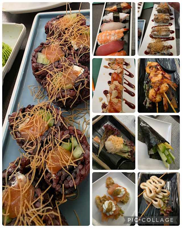 - Riso venere, salmone, branzino, tonno, salsa miso, teriyaki