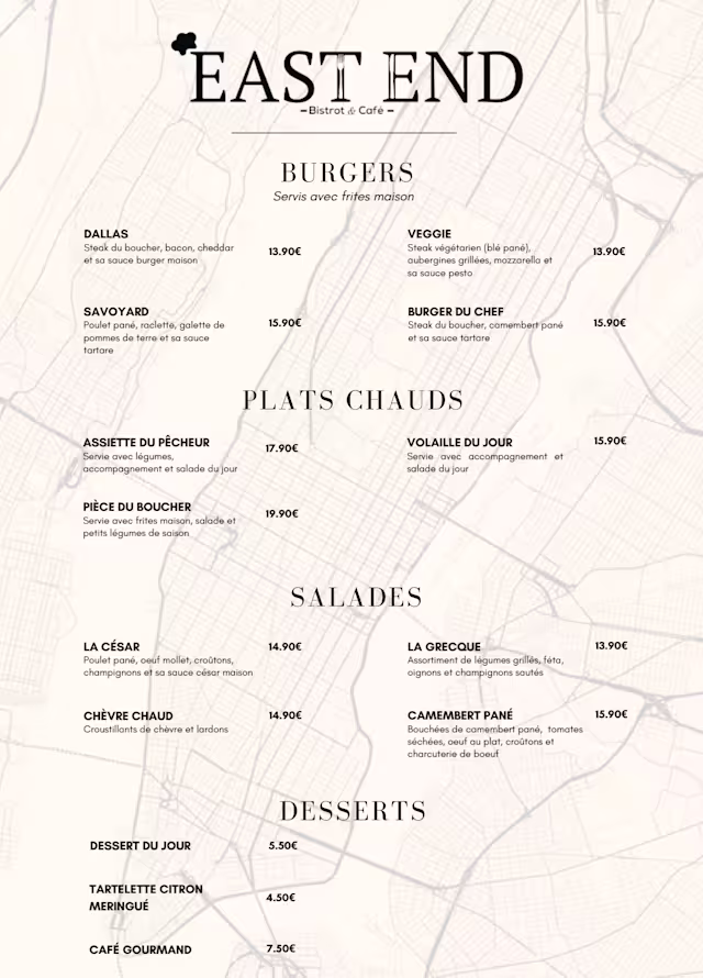 Restaurant de burgers maison et de salades.