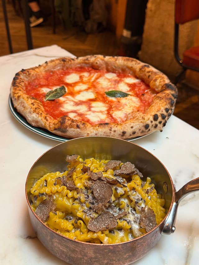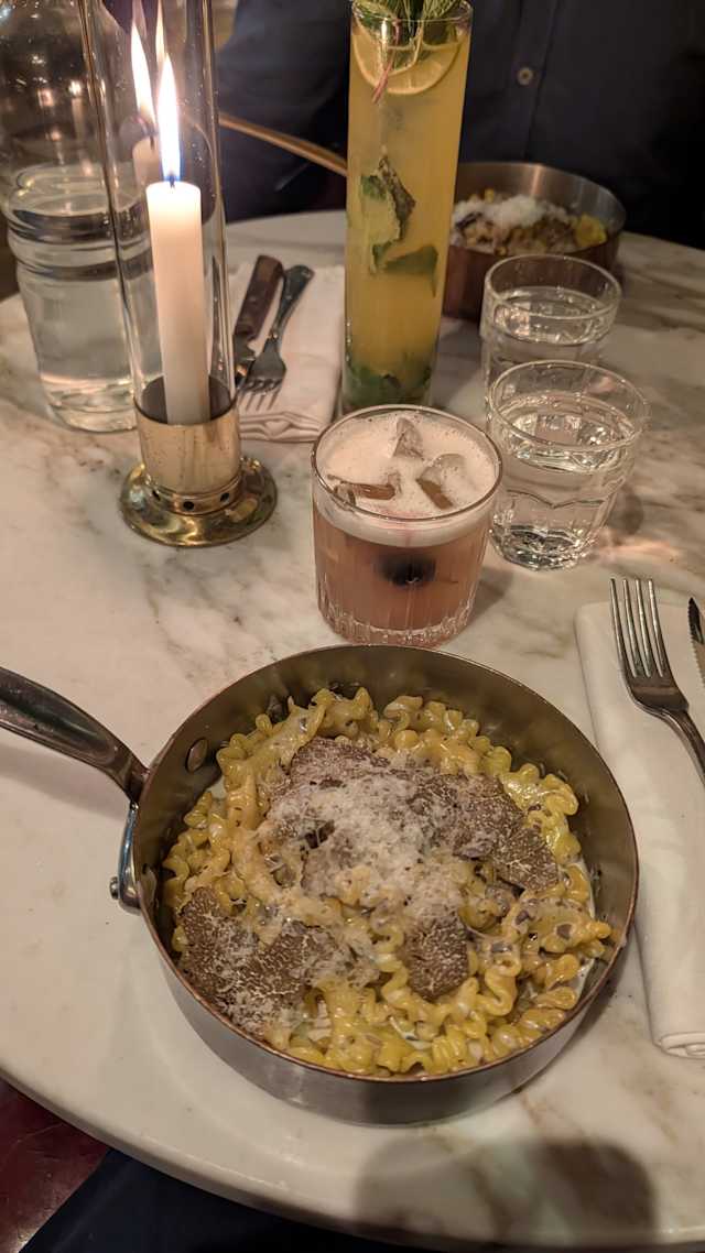 10/10The dining experience was exceptional, with generous portions and a welcoming approach to sharing plates. True to Italian tradition, the menu was also highly vegetarian-friendly. Cocktails set the evening’s tone: Kiss Kool offered a refreshing, citrusy twist on the Limoncello Spritz DJ Paloma impressed with its tangy boldness Matcha Lady balanced earthy elegance with finesse The mains were outstanding, particularly the Truffle Pasta, aromatic, indulgent, and made even more memorable by the waiter’s generous tableside grating of cheese. The Regina Parma was equally refined, showcasing Italian simplicity at its best. Desserts, however, were less compelling. The Tiramisu, though light and airy in texture, lacked depth of coffee and Marsala. The Profiterole al Pistacchio, while well-conceived, was overshadowed by chocolate, which dulled the delicacy of the pistachio ice cream. Overall, superb experience and never disappoints.