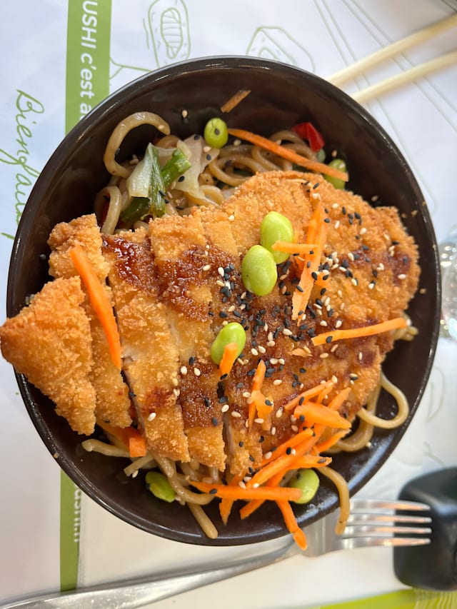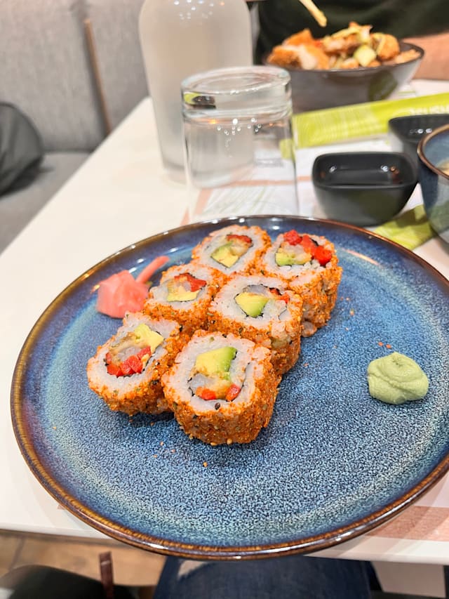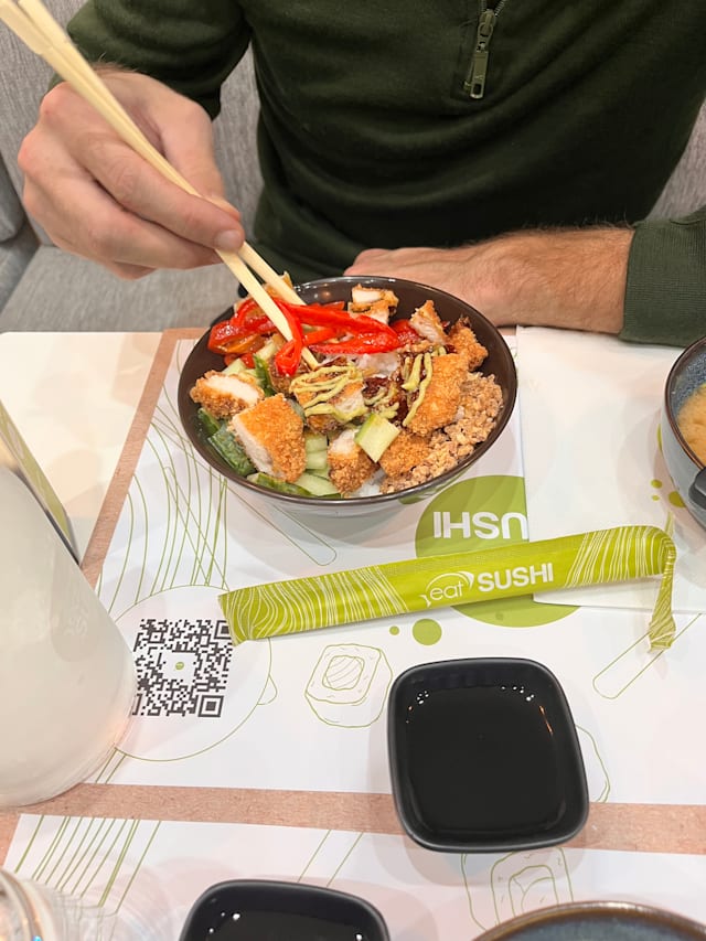 7.5/10Its more of a take out place than a restaurant, but the food is good and the staff is friendly. It is pretty cold and the light is a bit to bright. But our kid wasnt out of place, so extra bonuspoints for that