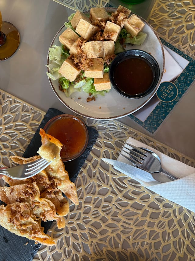 10/10Fabulous place. Very comfortable surroundings. Plenty of room between tables. Staff very friendly and attentive. Very good prices. The red house wine is delicious. The food was amazing. All cooked fresh and hot. We had the crispy pork belly starter 10/10. The spicy seafood salad and beef massaman curry. With TheFork discount this was exceptional!! Definitely return. Thank you