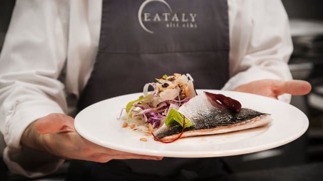 4/10Honestly a very disappointing dining experience. I learnt about Eataly when being in Canada and was eager to try it at its place of origin, thinking that with freshly sources ingredients the food would be amazing as the one in Toronto was really really good. However the food was mediocre at best. The Caesar salad had a vinaigrette dressing instead of Caesar dressing. The salumi were also not the best, much better ones are sold at local shops and the service was disappointing. We were forced to help our dirty cutlery because we had a second course, waiting times were long and with more customers arriving after us we were completely forgotten about. The ambiance also was a weak point, as the plastic chairs looked cheap and the squeaky escalator made me feel like in a mall food court