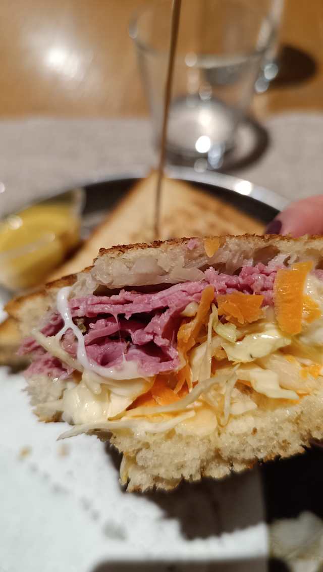 - Pane enkir della panetteria di eataly con maiale sfilacciato e speziato con coleslaw e cipolla caramellata.