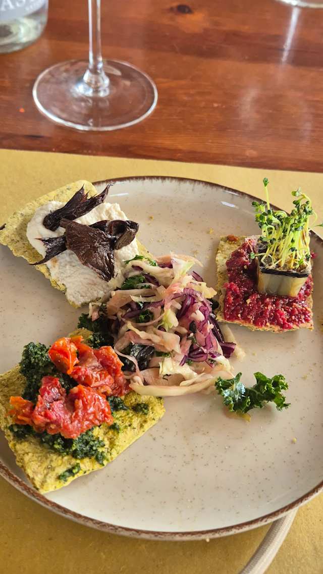 - Tris di cracker dorato con le nostre salse ( pesto di semi di zucca, hummus alla barbabietola, sugo al pomodoro) con ciboci everytime e il nostro katana