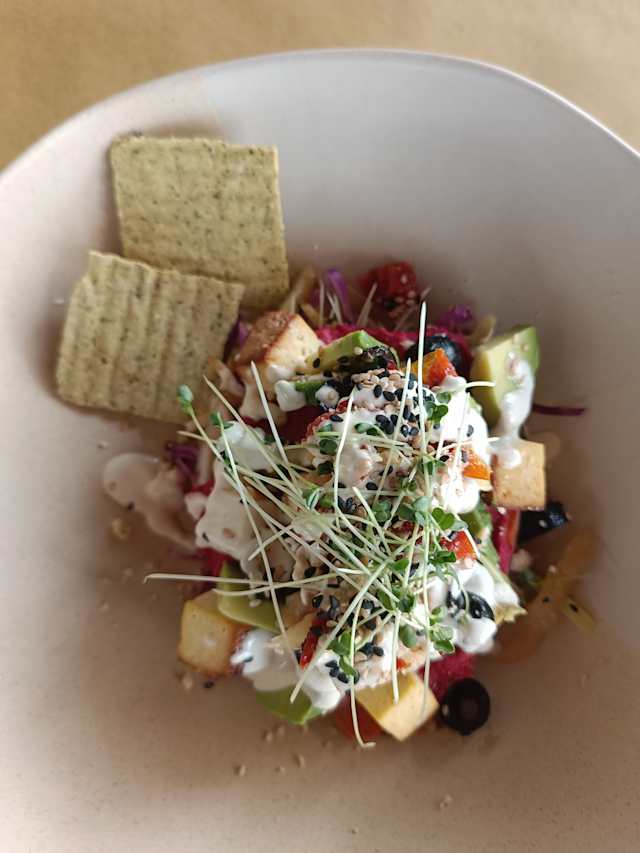 - Insalata di tofu, zenzero e bacche di goji con i nostri microgreens (homemade), con patata dolce al forno e finocchio e arancia con dressing di soia