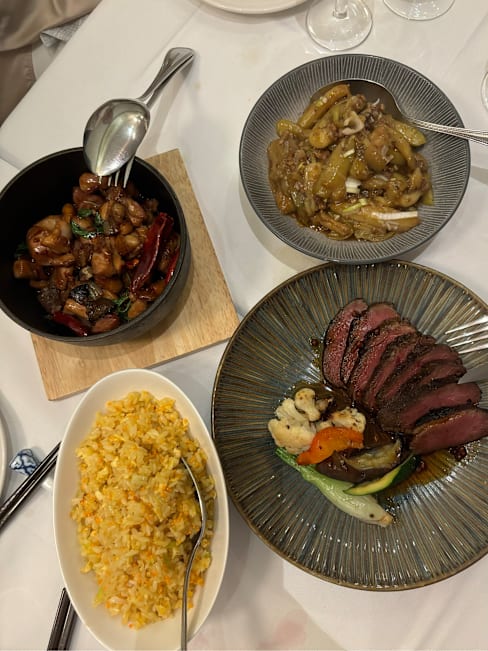 7/10Wait staff was nice, food was ok. Had the fried pepper and salt shrimp, pepper beef, noodles with vegetables, and razor clams. Disappointed to see foie gras on the menu, cruel to the animals and unnecessary.