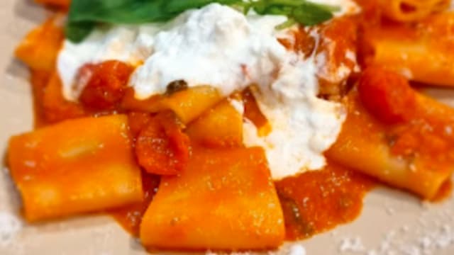 Paccheri freschi al pomodoro con stracciatella di burrata