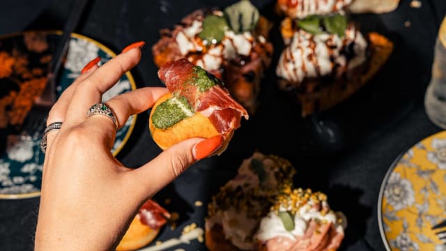 - Prosciutto crudo 18 mesi, stracciatella, pomodori secchi e basilico