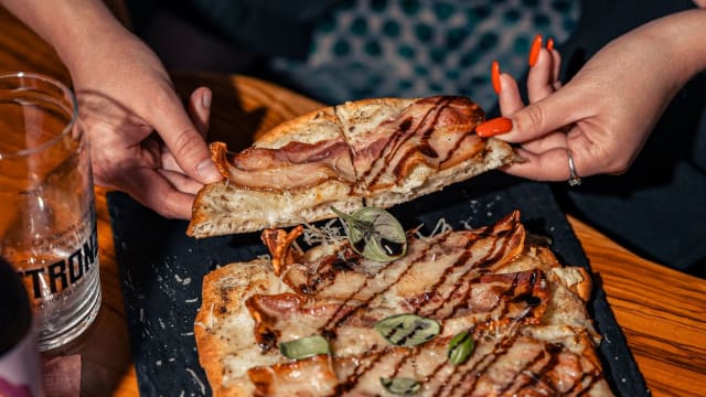 - Fonduta di cacio e pepe, bacon croccante
