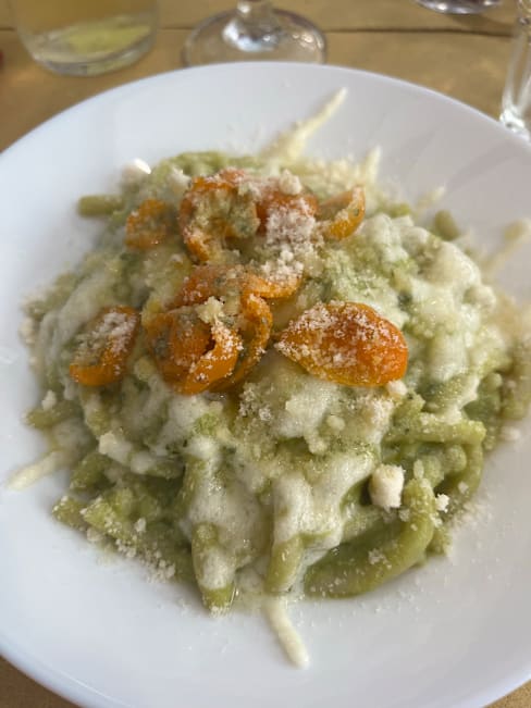 10/10Very nice food, very good service, nice selection of products (olive oil, cheeses, etc) inside at the counter, good prices. Highly recommended. We had starters, pasta, meat, salad, and dessert. Everything was great.