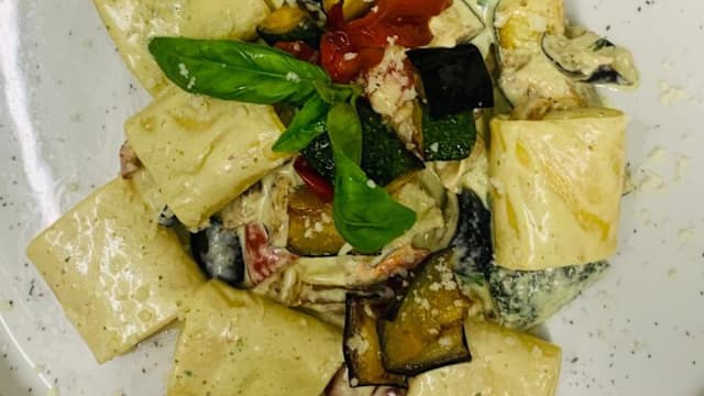 Pacchero di gragnano con verdure di stagione e crema di zucchine