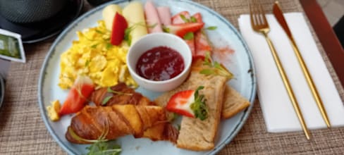 10/10Great for breakfast. 3 different choices all come with choice of drink and a glass of bubbles.