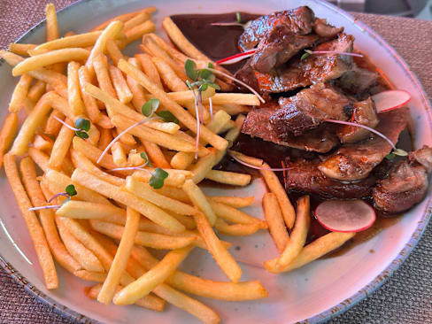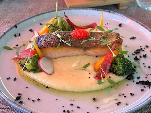 8.5/10We went there for lunch. Note that the restaurant’s full menu is only applicable for dinner. For lunch, there are only snacks and a limited choice of food. We chose the salmon and steak. These dishes were okay. The service was good. The ambiance is influenced by the mini-golf.
