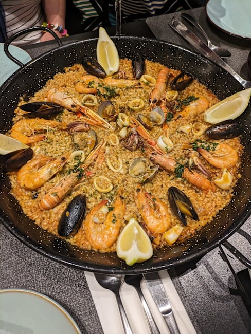 10/10Seafood and fish paella were excellent. Worth the 40 minute wait for food to be cooked. All the appetizers was excellent, calamari, hummus, eggplant, mussels, patatas bravas.