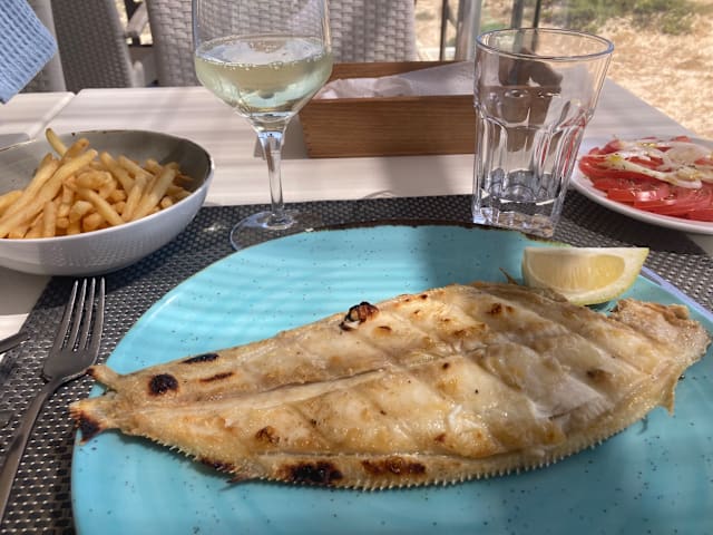 4.5/10I specifically ordered a whole seabass- I advised I did not want it butterflied as it ruins the fish. We had the cover; then my fish arrived and was cooked butterflied- i stated i had asked for it complete, and that I wanted a fresh fish- complete, and my husband's lunch also cooked freshly again; the waiter said ok- it will be about 20 mins. 30 mins later- our correct lunch arrived- no apology and no reduction from the bill. Could do better!