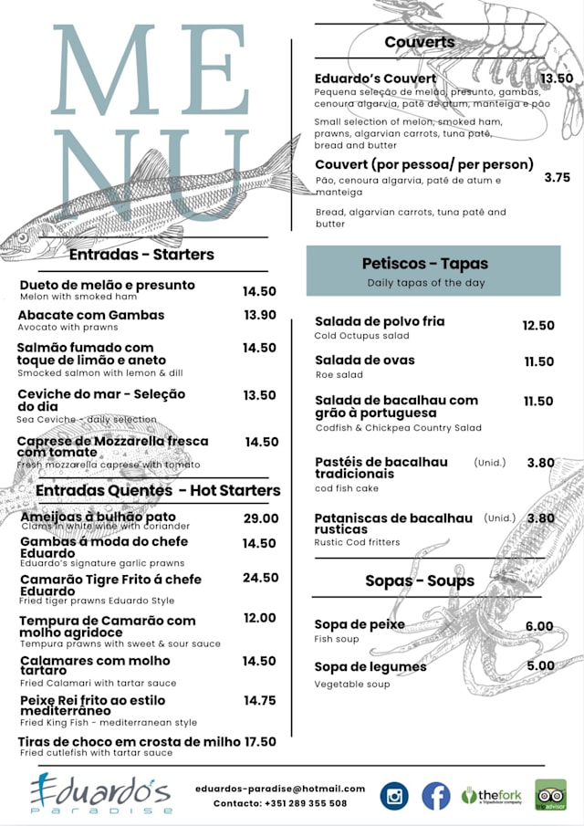 10/10Eduardos has great views and the food is delicious. I had clam linguine and an amazing algarve salad. the grilled Sole at the next table looked so good too. Very nice staff.