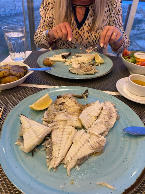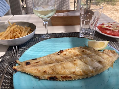 4.5/10I specifically ordered a whole seabass- I advised I did not want it butterflied as it ruins the fish. We had the cover; then my fish arrived and was cooked butterflied- i stated i had asked for it complete, and that I wanted a fresh fish- complete, and my husband's lunch also cooked freshly again; the waiter said ok- it will be about 20 mins. 30 mins later- our correct lunch arrived- no apology and no reduction from the bill. Could do better!