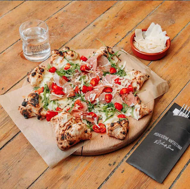 - En forme d'etoile: chaque pointe est garnie au choix par le pizzaiolo, au centre roquette, jambon de parme, mozzarella, tomate cerise, grana padano, huile d’olive