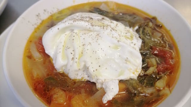 Zuppa tipica composta da verdura, pane tostato, parmigiano e uovo in camicia