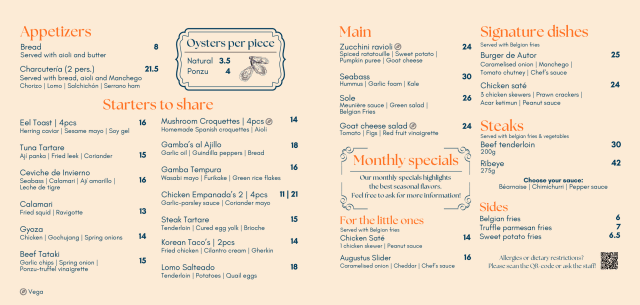 10/10The short rip was very tasty, the service very attentive and accommodating. The ambiance is very cosy and tastefully furnished. If you are in The Hague, you should definitely go out to eat here.