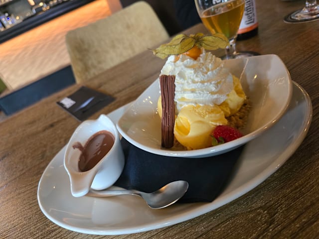 10/10Great service, tasty food, nice atmosphere. Nothing to complain about. I had the fish with chips, very hot and delicious. Fast service, good was really fast. Nice place to eat with the kids. Free parking 10 minutes walk
