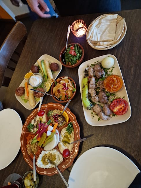 9/10Authentic, home made and fresh Syrian food. Good quality for a good price. Lunch, dinner, take away and catering. Good atmosphere.