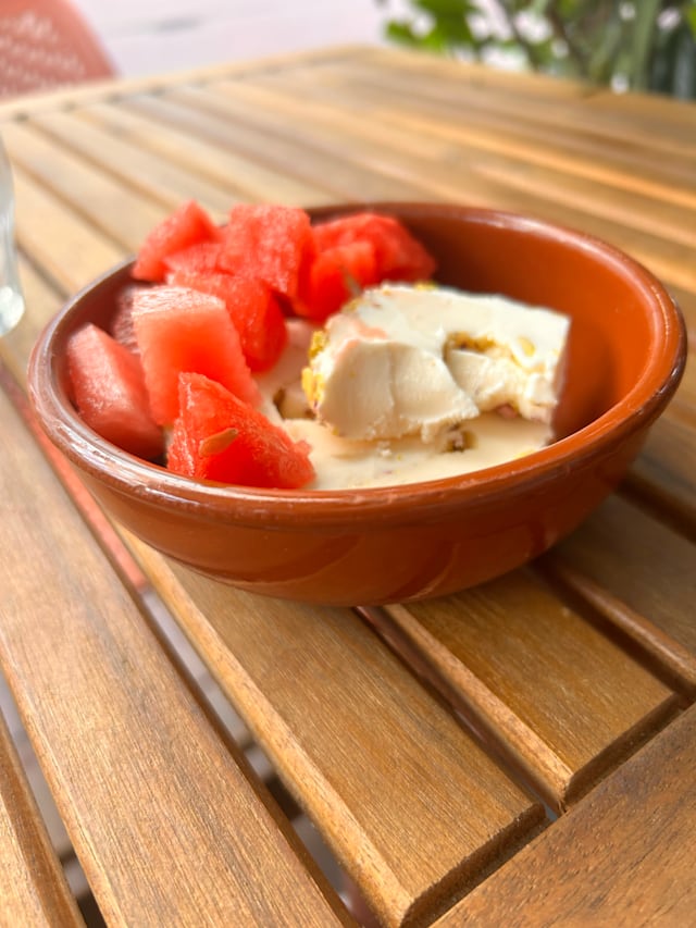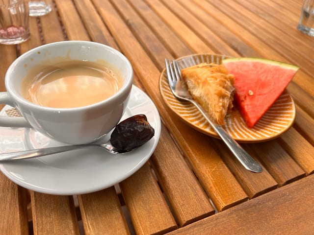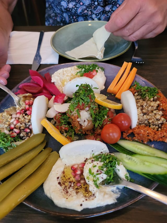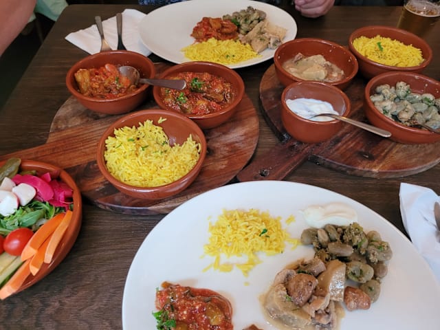 7/10We tried several mezze and these were all were delicious albeit seriously over-priced. The lentil soup was good though nothing special. Unfortunately they had run out of the vegan maple-pecan ice cream so we tried the baklava which we as nicely decorated and served with fresh fuits. All in all a good experience though price vs quantity was a bit unbalanced.