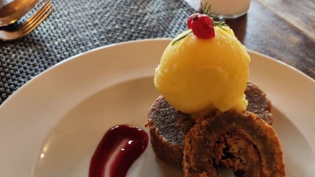 Torta de Amêndoa com sorvete de Laranja Algarvia