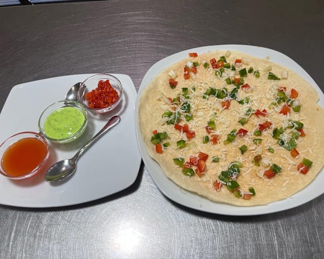 Pan de lentejas con queso, cebolla, jengibre, chili y cilantro fresco